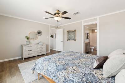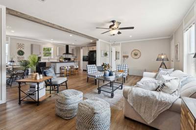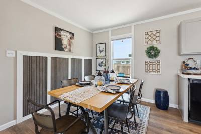 Dimensions, floor plans, elevations, features and other information are subject to change without notice. Square footage and other dimensions are approximations. Elevations, photography and videos are often shown with optional features and/or third party additions, such as garages and porches that may not be available in all regions or situations. Décor selections shown in photography and renderings may not represent the current offerings. Visit your local Champion retailer for more details.